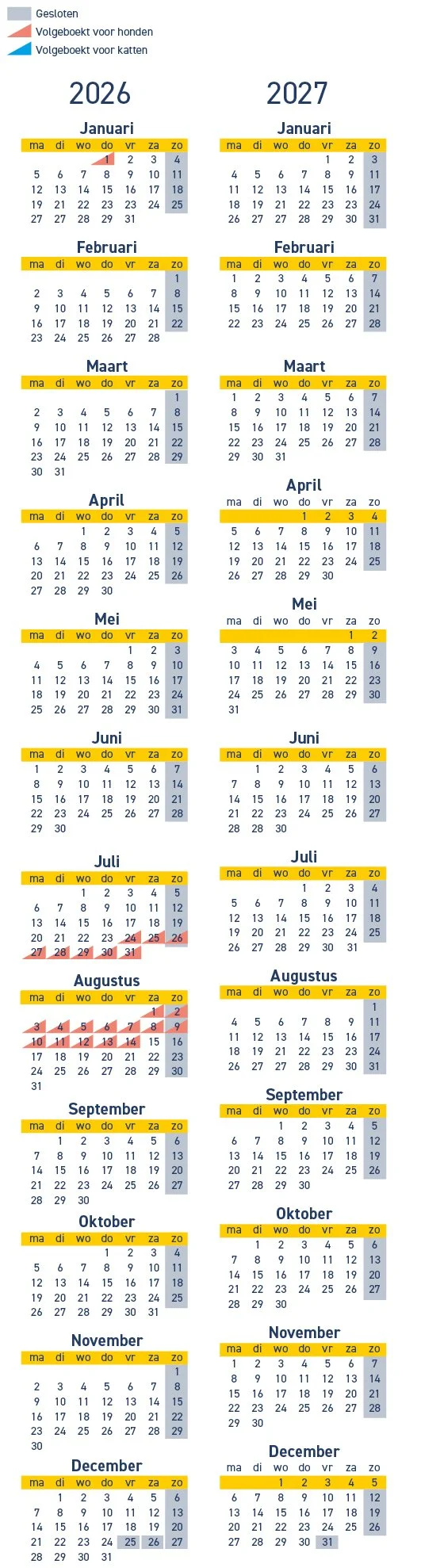 * voorjaars-, mei-, zomer-, herfst-, kerstvakantie en oud & nieuw.